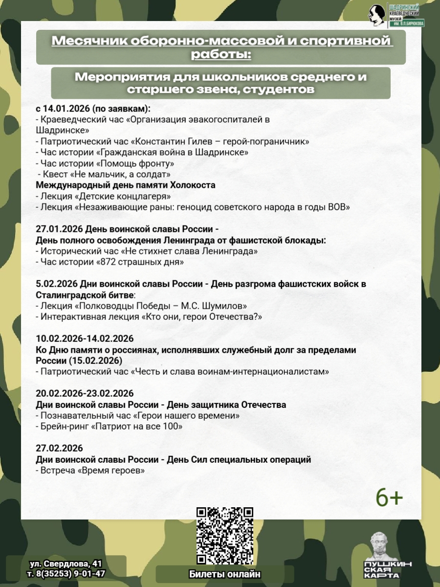 1. В период проведения конкурса участникам нужно посетить максимально возможное число военно-патриотических мероприятий, организованных Шадринским краеведческим музеем.